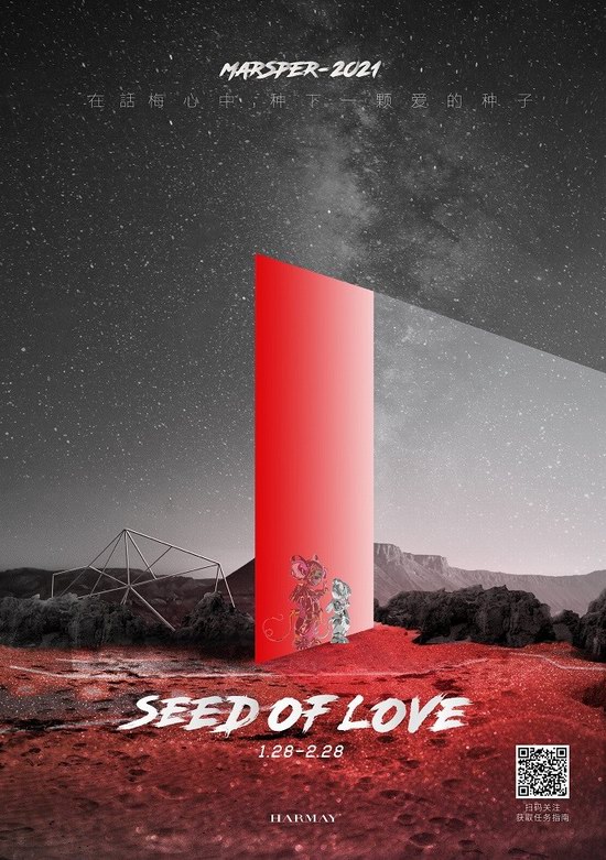 新年将至,HARMAY話梅与品牌BORN TO LOVE首款IP形象Marsper联手打造以“SEED OF LOVE”为主题的限时艺术展,并于北京、上海、成都三地门店同时进行,在寒冷的冬日为每一位参与者传递一份爱的暖意。