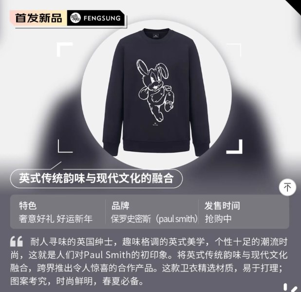 paul smith 2023春夏兔子印花卫衣:英式传统韵味与现代文化的融合
