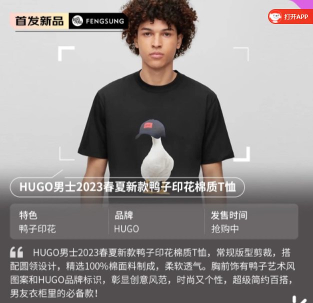 HUGO男士2023春夏新款鸭子印花棉质T恤:超级简约百搭,男友衣柜里的必备款!