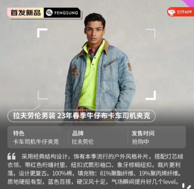 拉夫劳伦2023年春季卡车司机夹克:复古设计,蓝色百搭,硬汉风十足