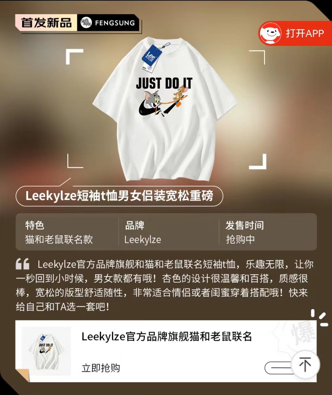 Leekylze官方品牌旗舰和猫和老鼠联名短袖t恤,乐趣无限,让你一秒回到小时候,男女款都有哦!杏色的设计很温馨和百搭,质感很棒,宽松的版型舒适随性,非常适合情侣或者闺蜜穿着搭配哦!快来给自己和TA选一套吧!