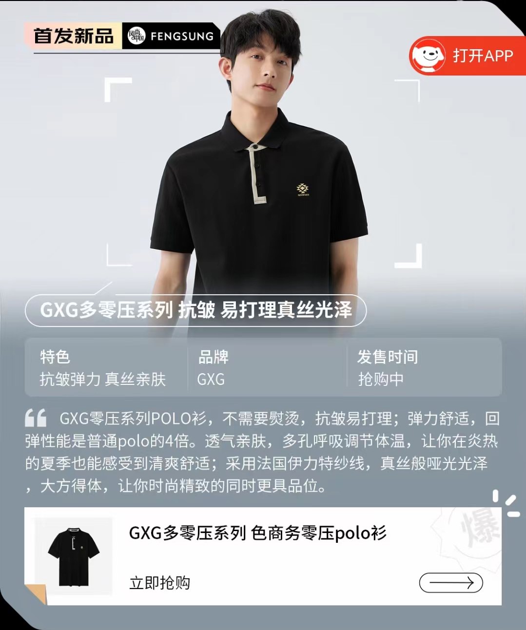 GXG零压系列POLO衫,抗皱易打理,让你时尚精致更具品位